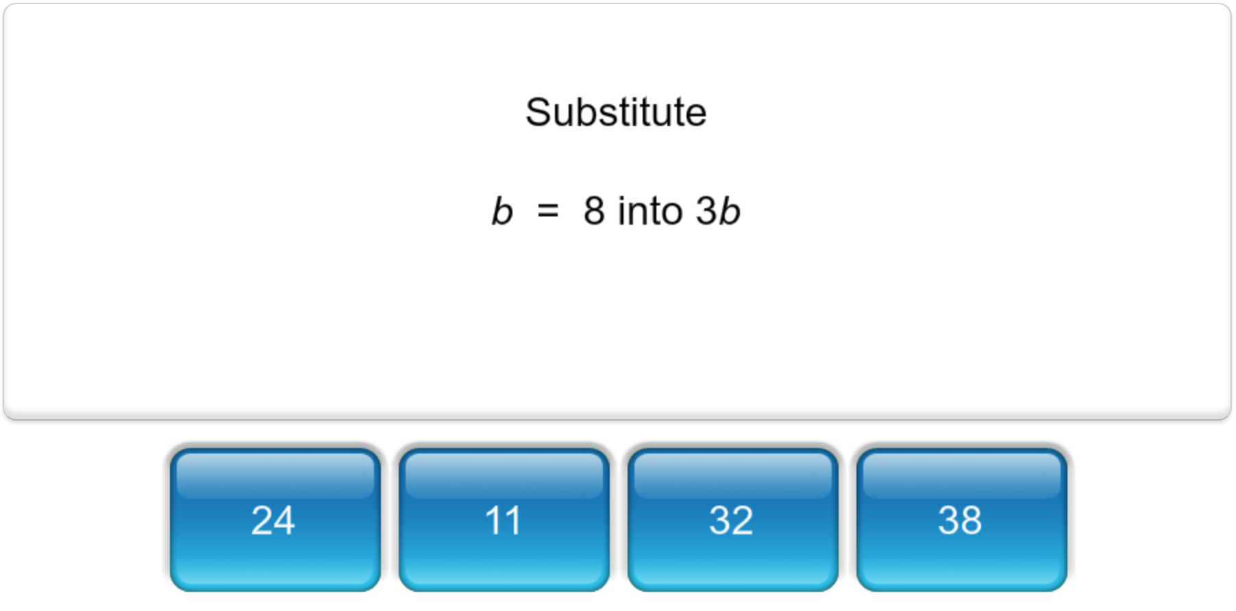 Introduce your students to algebraic substitution through the use of Mangahigh’s adaptive quiz ‘Substitute whole numbers into algebra’. Students will start with ‘Easy’ questions to help introduce new ideas and then move onto ‘Medium’ questions with some scaffolded support. Students then progress onto ‘Hard’ questions that really test their understanding, and the most able will move on to ‘Extreme’ questions that will challenge even the brightest students.