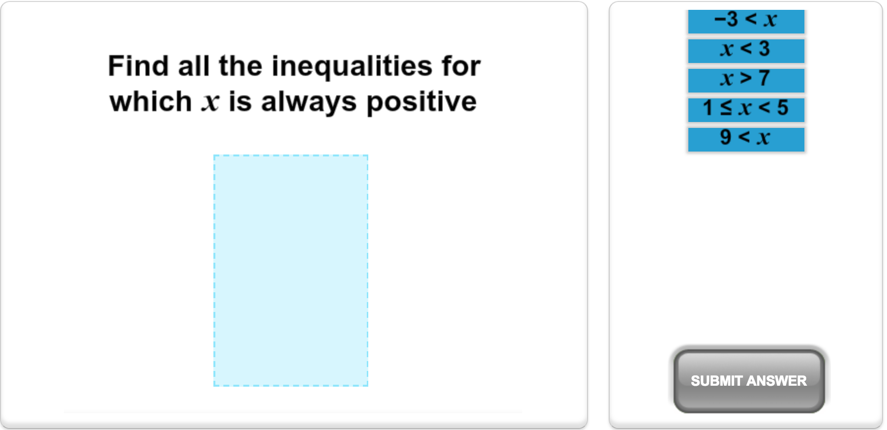 Introduce your students to algebraic substitution through the use of Mangahigh’s adaptive quiz ‘Substitute whole numbers into algebra’. Students will start with ‘Easy’ questions to help introduce new ideas and then move onto ‘Medium’ questions with some scaffolded support. Students then progress onto ‘Hard’ questions that really test their understanding, and the most able will move on to ‘Extreme’ questions that will challenge even the brightest students.